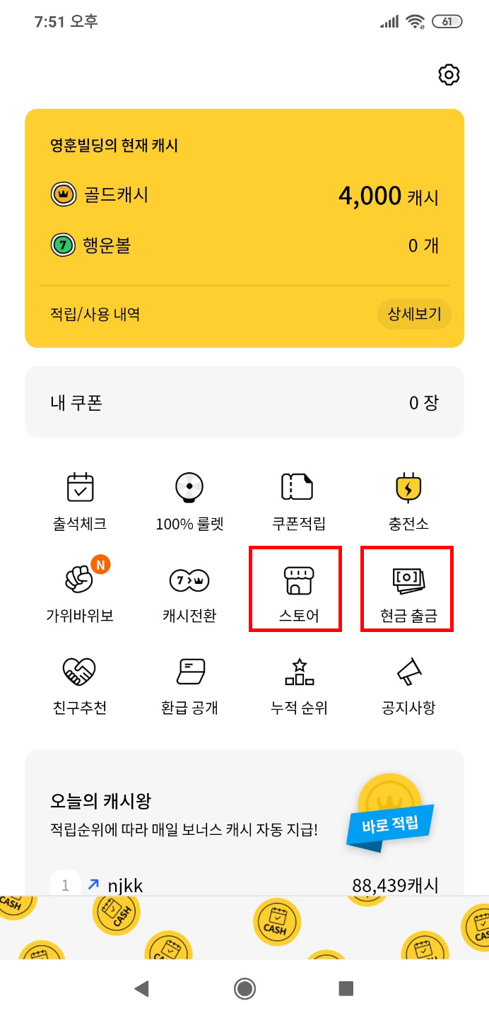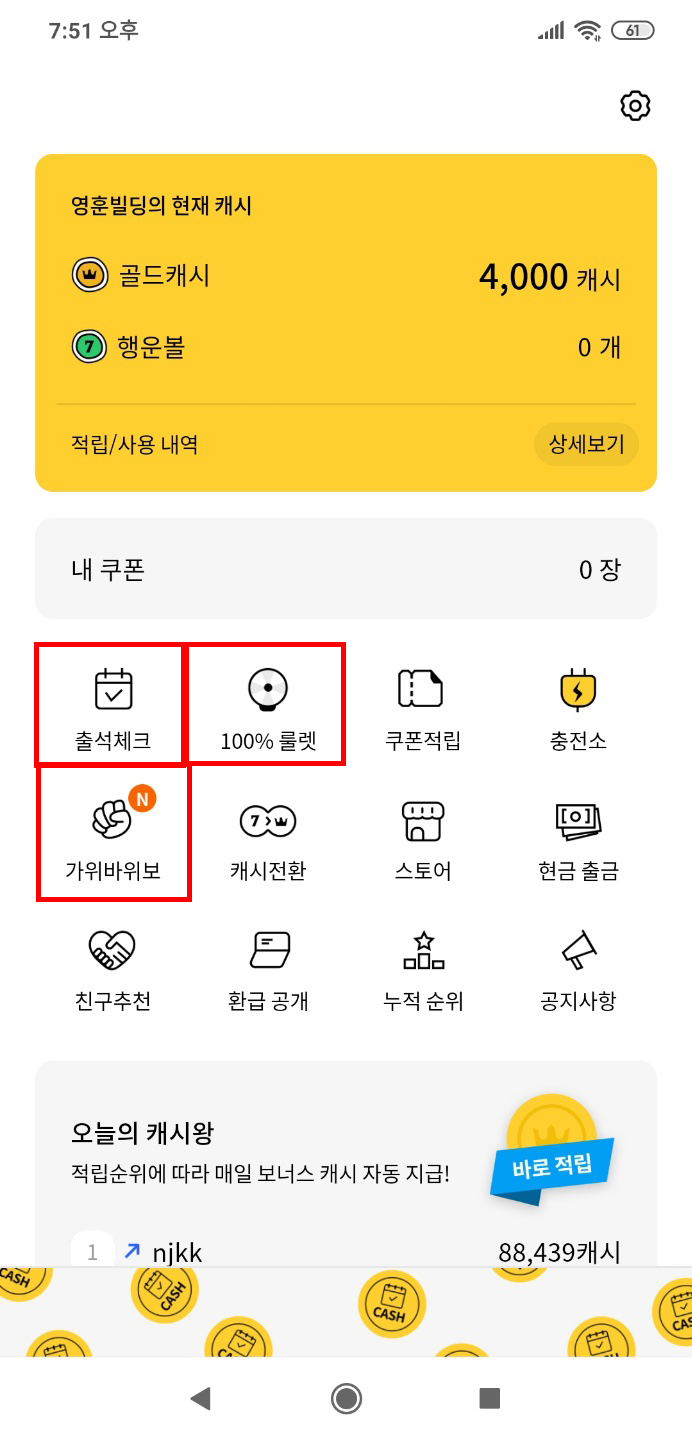Step 2. 검색 창에 오늘의캐시
